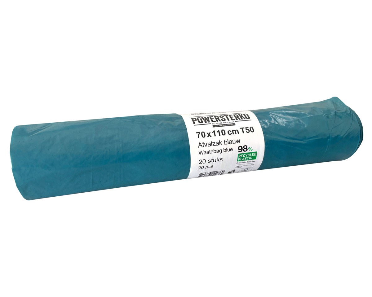Blauwe LDPE afvalzak 70x110cm, T50 kwaliteit.